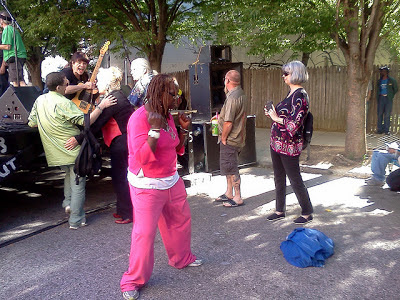 Though there's a lot to see and do down at SoWeBo - like all the art and crafts on display (though most people seem to just eat, drink, get sunburn, and listen to the free music) - Amy "I have enough t-shirts & jewelry" Linthicum and I set out to hang at the Marble Bar Time Capsule Stage (officially known as The Redux Stage, on the corner of Arlington and Lombard) as our prime objective, because this was Festival Ground Zero for seeing all the old people (Marble Bar Baby Boomers like us) and hearing all the old music (late '70s & 1980s Punk-New Wave-Postpunk) that we like.