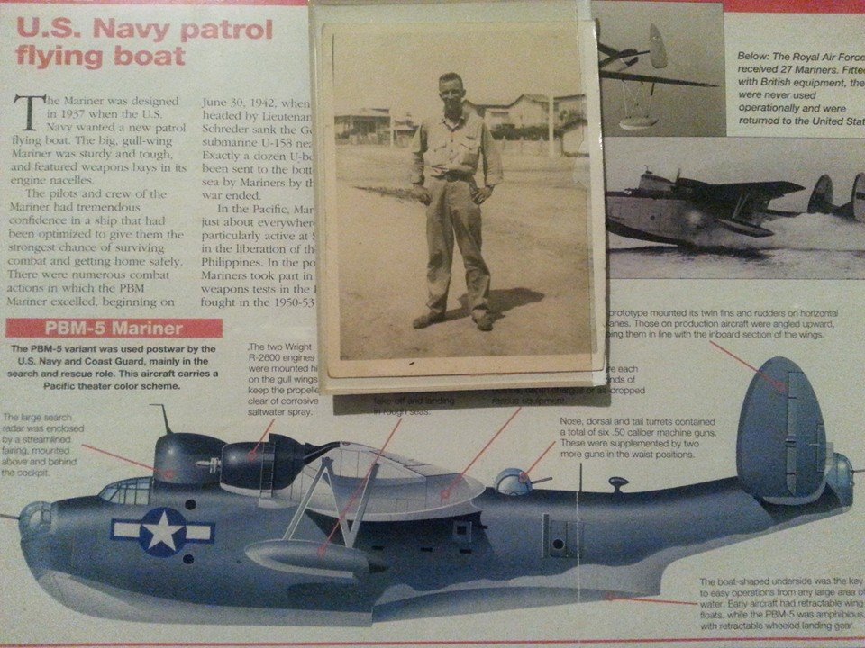 | The PBM-5 Mariner flying boat with insert pic of William Warner |